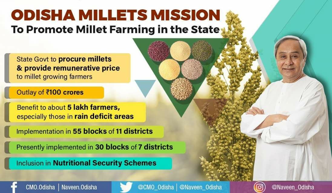 The state government has also decided to include minor millet like little millet (suan) and foxtail millet (kangu) in midday meal (MDM) and Integrated Child Development Services (ICDS) programmes. The required millet will be produced and supplied by Farmer Producer Organisations (FPOs) and women SHGs.
