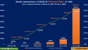 Meanwhile, India’s COVID-19 recovery rate continued to improve steadily to stand at at 63.33 per cent.