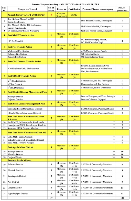 On the occasion, Majhi also awarded 142 people, who played a significant role in achieving ‘zero casualty’ during Cyclone ‘Dana’.
