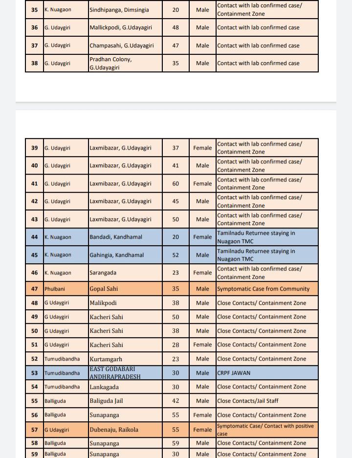 According to the district administration, 18 of these cases have been reported from Baliguda followed by 15 from Tumudibandh, 13 from G Udaygiri, five from K Nuagaon, three from Chakapad, two from Kotagard and one each from Phiringia, Daringbadi, and Phulbani.