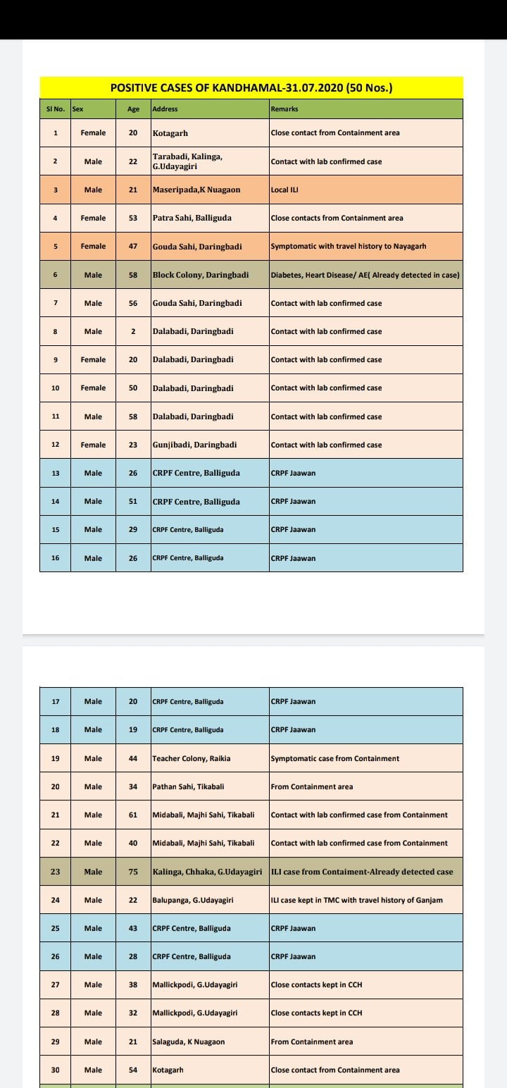 Of the new positive cases, 18 were reported from G Udaygiri, followed by Baliguda (9), Daringbadi (8), Tikabali (5), Kotagarh (2), Chakapad (2), K. Nuagaon (2), Raikia (2), Phulbani (1) and Kajuripada (1).
