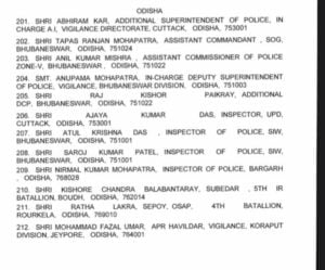 Similarly, 80 personnel from across the country including 2 from Odisha will be honoured with President’s Police Medal for Distinguished Service. The Odisha personnel are K Benugopal Acharya, in-charge DSP, Vigilance Division, Bhubaneswar and Branchi Narayan Sahoo, constable, Biju Patnaik State Police Academy, Bhubaneswar.