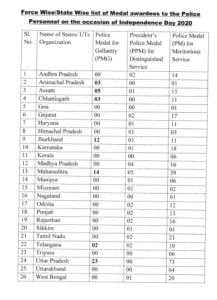 New Delhi: Ministry of Home Affairs has announced the list of medals to be awarded to police personnel on Independence Day this year.