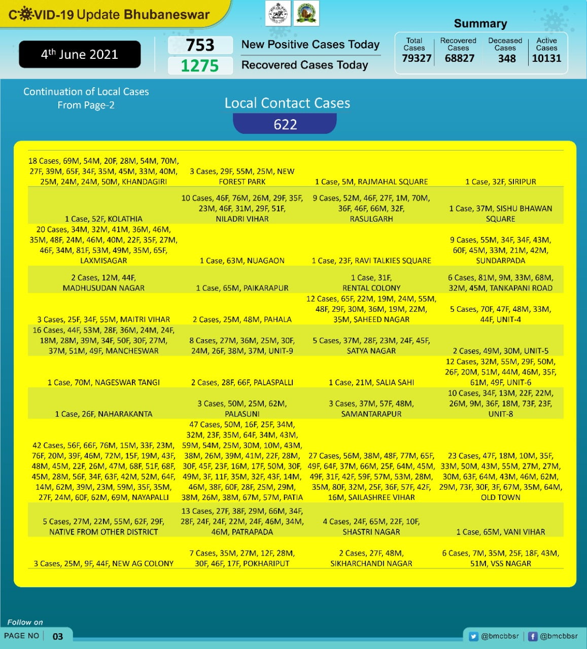 Bhubaneswar has seen 68,827 people recover from coronavirus. It currently has 10,131 active cases.