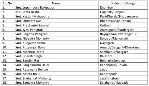 Bhubaneswar: The BJD on Monday appointed 18 women leaders as district in-charge of the state women committee.