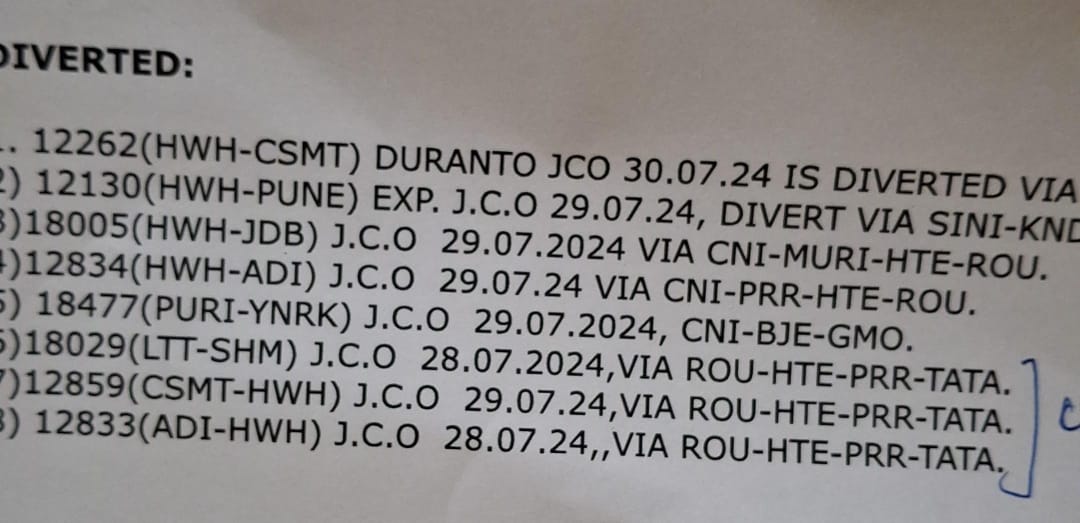 \r\n\r\n“More than 80% of the passengers have been transferred by buses and other majors to nearby stations and they are being provided with a choice to travel further with a special rake,” said Central Railway CPRO Swapnil Nila told ANI.\r\n\r\nAccording to reports, most passengers were jolted out of their sleep when several coaches derailed one after another.\r\n\r\nSpecial arrangements by South Eastern Railway\r\n\r\n>>  Special bus service has been arranged for transportation of passengers from the derailment spot\r\n>> Stranded passengers were carried to Chakradharpur station by a Relief Train\r\n>>  Injured passengers were immediately shifted to Chakradharpur\r\nRailway Hospital and CHC Khutpani\r\n>> 02810 Chakradharpur-CSMT Mumbai Special (Relief) Train will leave Chakradharpur around 10.00 hrs with the passengers\r\n>> Ex-gratia of Rs 50,000 each has already been paid to four injured passengers. Grant of Ex-gratia for the rest injured passengers is under process.\r\n\r\nRailway issues helpline numbers\r\n\r\nThe Indian Railways has issued the following helpline numbers: Tatanagar: 06572290324, Chakradharpur: 06587 238072, Rourkela: 06612501072, 06612500244, Howrah: 9433357920, 03326382217, Ranchi: 0651-27-87115 and Mumbai: 022-22694040, Sambalpur: 06632400360.\r\n\r\nSeveral trains have been cancelled or diverted because of the derailment, which has halted services on Tatanagar-Chakradharpur section of South Eastern Railway.\r\n\r\nTrain cancelled\r\n\r\n22861 Howrah-Kantabaji Express,\r\n\r\n08015'18019 Kharagpur-Dhanbad Express\r\n\r\n12021/12022 Howrah-Barbil Express.\r\n\r\nTrain short-terminated & running on alternate routes\r\n\r\n18114 Bilaspur-Tata Express has been short-terminated at Rourkela.\r\n\r\n18190 Ernakulam-Tata Express has been short-terminated at Chakradarpur\r\n\r\n18011 Howrah-Chakradharpur Express has been short-terminated at Adra.\r\n\r\n\"\"\r\n\r\nReports of another derailment\r\n\r\nAn official said there was another derailment of a goods train nearby, according to reports. However, it was not yet clear whether the two accidents occurred concurrently.\r\n\r\n ","author":{"@type":"Person","name":"OB Bureau","url":"https://odishabytes.com/author/bureauob/","sameAs":["https://www.odishabytes.com","BytesOdisha"]},"articleSection":["Accident","Featured","India"],"image":{"@type":"ImageObject","url":"https://assets.odishabytes.com/wp-content/uploads/2024/07/train-2.jpg","width":1156,"height":534},"publisher":{"@type":"NewsMediaOrganization","name":"OdishaBytes","url":"https://odishabytes.com","logo":{"@type":"ImageObject","url":"https://odishabytes.com/wp-content/uploads/2024/11/Odisha-Byyes-Logo150-min.png"},"sameAs":["https://www.facebook.com/odishabytes/","https://x.com/BytesOdisha","https://www.youtube.com/channel/UCZzaxCAclS9UoMtl51XuXkQ","https://odishabytes.com/feed/","https://news.google.com/publications/CAAqKggKIiRDQklTRlFnTWFoRUtEMjlrYVhOb1lXSjVkR1Z6TG1OdmJTZ0FQAQ?hl=en-IN&gl=IN&ceid=IN%3Aen"]},"isAccessibleForFree":true}