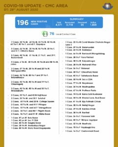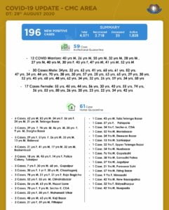 Cuttack: As many as 196 new COVID-19 positive cases were reported from the areas under Cuttack Municipal Corporation (CMC) on Saturday.