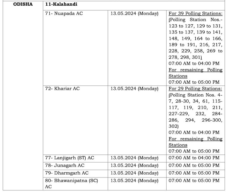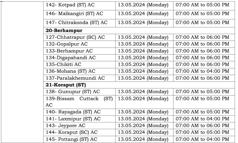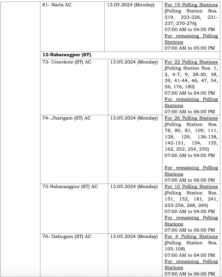 He added that polling in Kotpad and Koraput, Malkangiri, Rayagada and other seats in Gajapati and Nuadapa districts will end at 5 pm.
