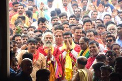 After offering prayers, the ministers attended a review meeting at the circuit house in Puri.