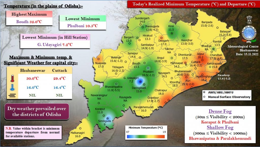 The twin cities of Bhubaneswar and Cuttack saw the temperature drop to 16 degree Celsius and 16.4 degree Celsius respectively.