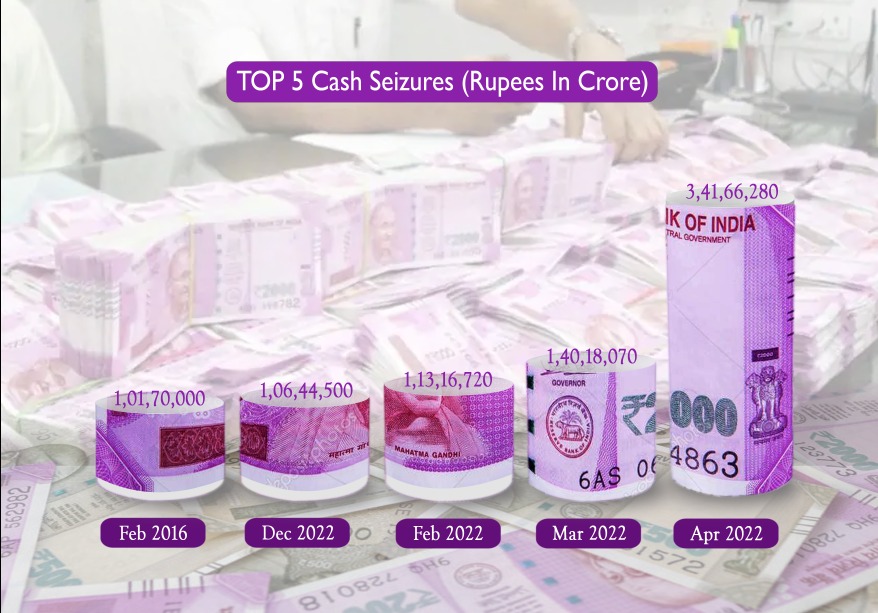 The top 4 cash seizures in DA searches in the history of the state Vigilance happened in 2022 with Rs 7.01 crore seizure.