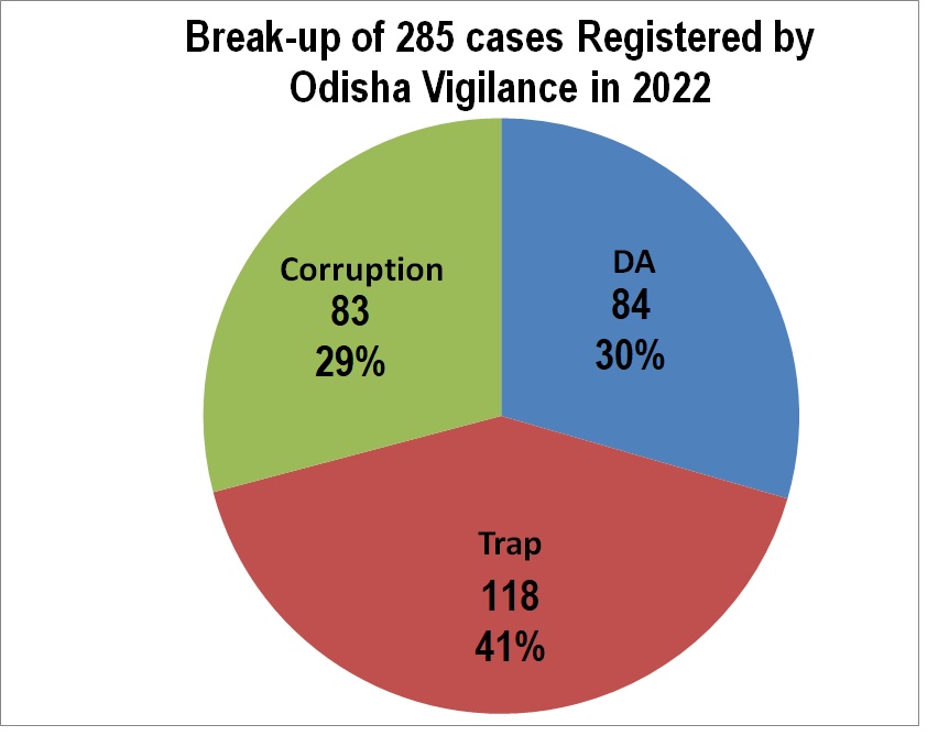 Bhubaneswar: Odisha Vigilance has registered 285 cases against 554 persons, unearthed disproportionate assets worth Rs 174 crore and achieved highest cash seizures in its history with top four recoveries amounting to Rs 7 crore during 2022.