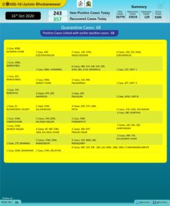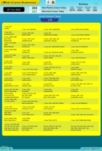 Of the fresh cases, 68 were detected in quarantine centres while 175 were local contact cases including 14 from Nayapalli and 10 from Saheed Nagar, according to Bhubaneswar Municipal Corporation (BMC).