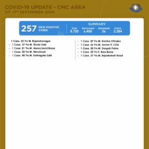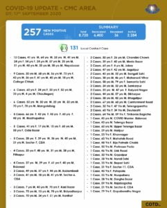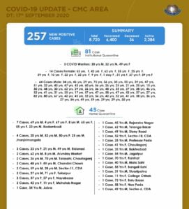 Cuttack: As many as 257 new COVID-19 positive cases were reported from the city on Thursday.