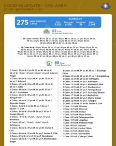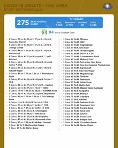 Cuttack: The city registered 275 new COVID-19 cases with maximum number reported from home quarantine on Saturday.