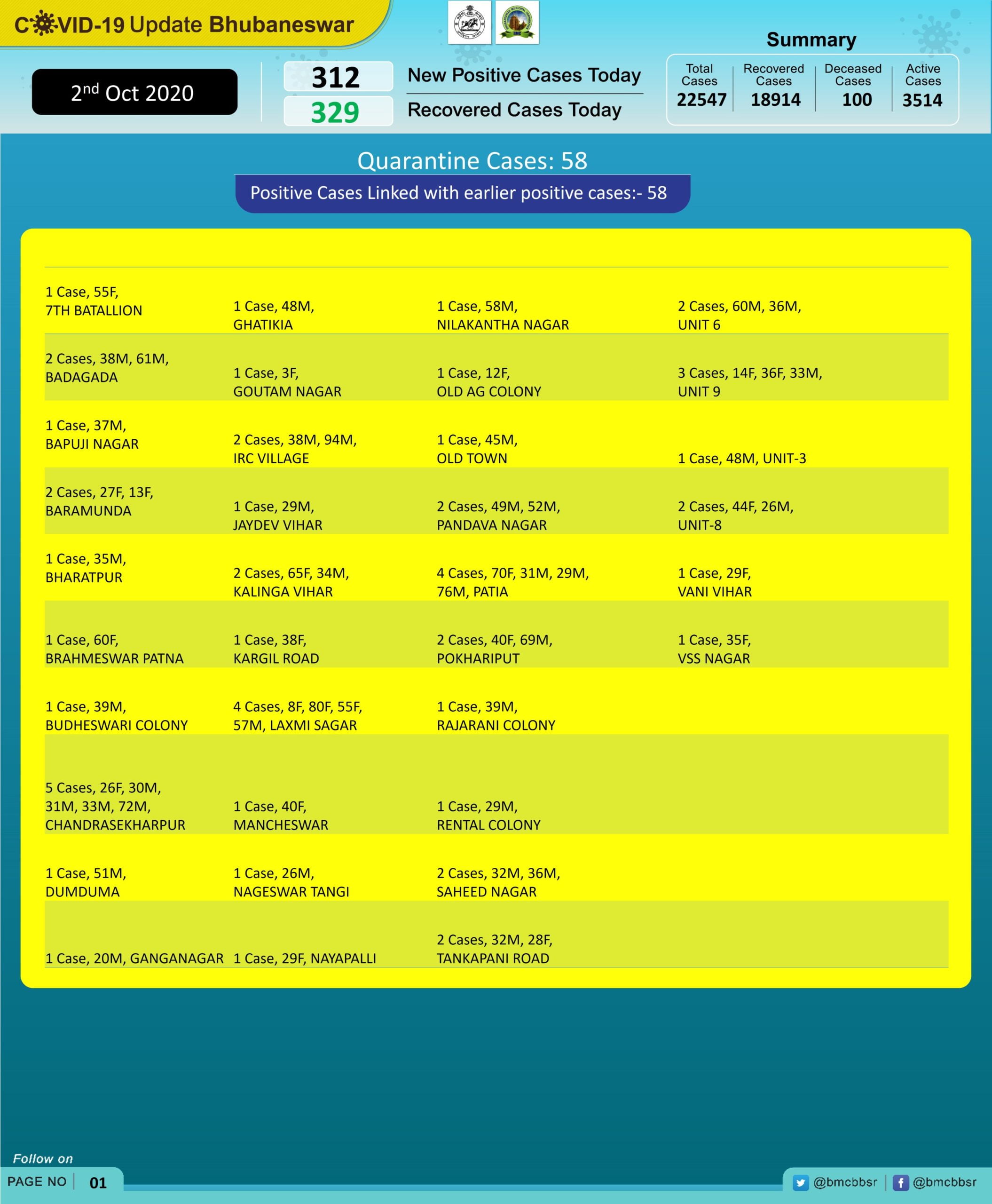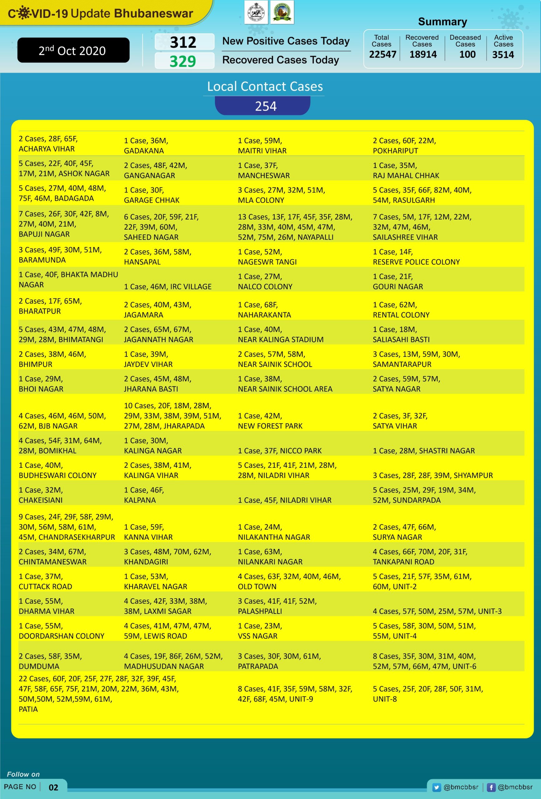 According to Bhubaneswar Municipal Corporation, 254 are cases of local transmission from unknown sources while 58 have been detected among those in quarantine.