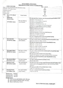 According to district COVID-19 status released by the collectorate, maximum 12 cases were reported from Malkangiri Municipality area, followed by 8 from Malkangiri block, 6 from Balimela NAC, 5 from Kalimela block, and one each from Korukonda and Khoirput blocks.