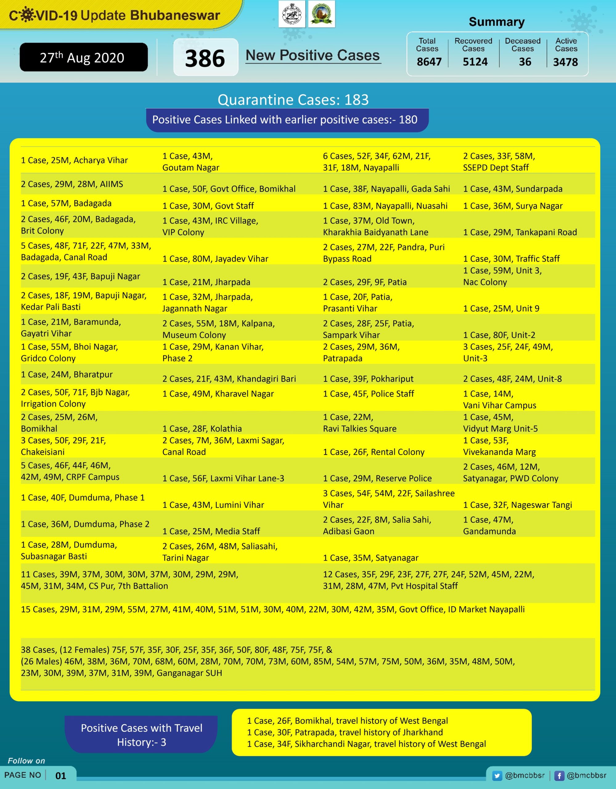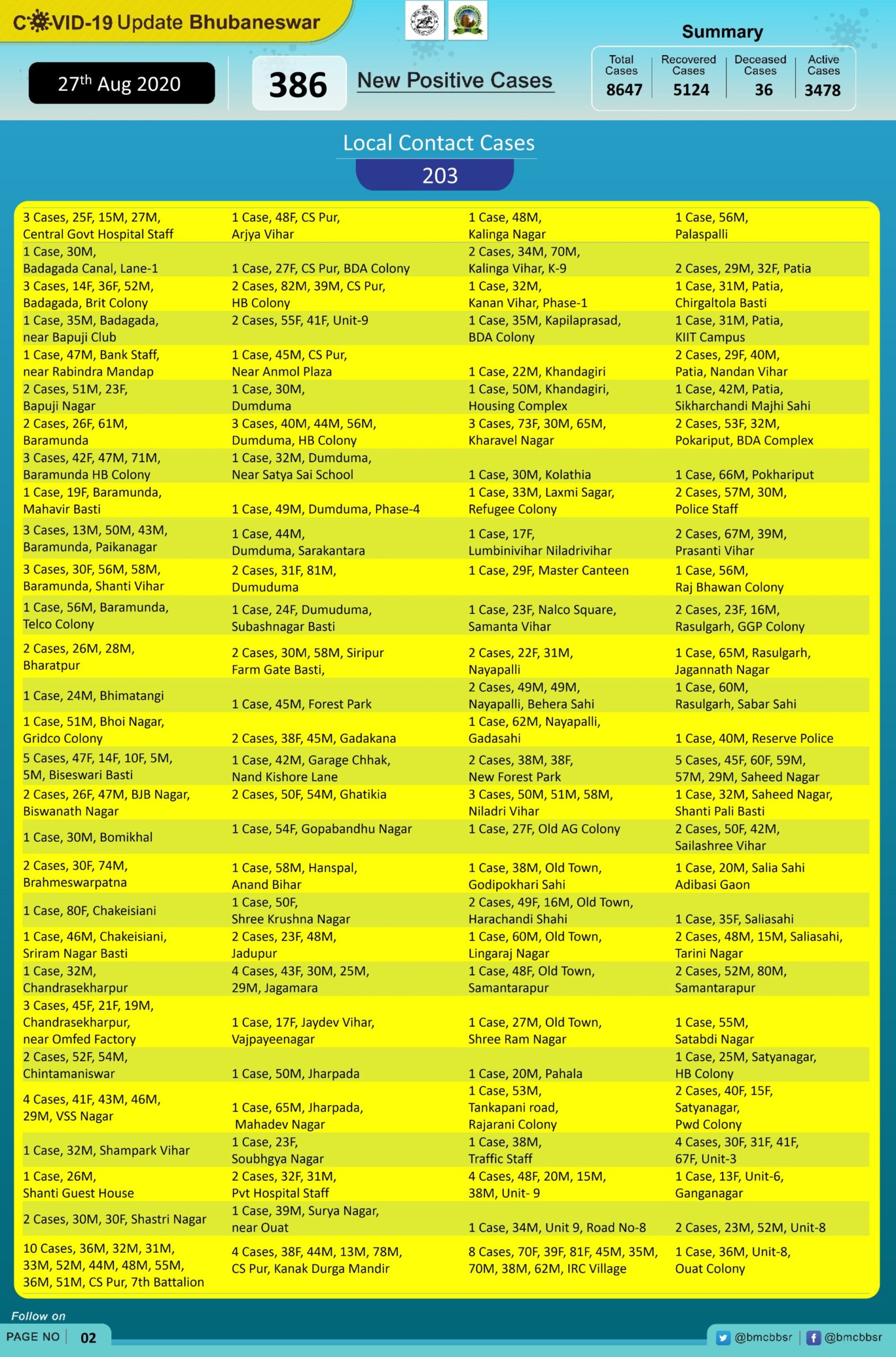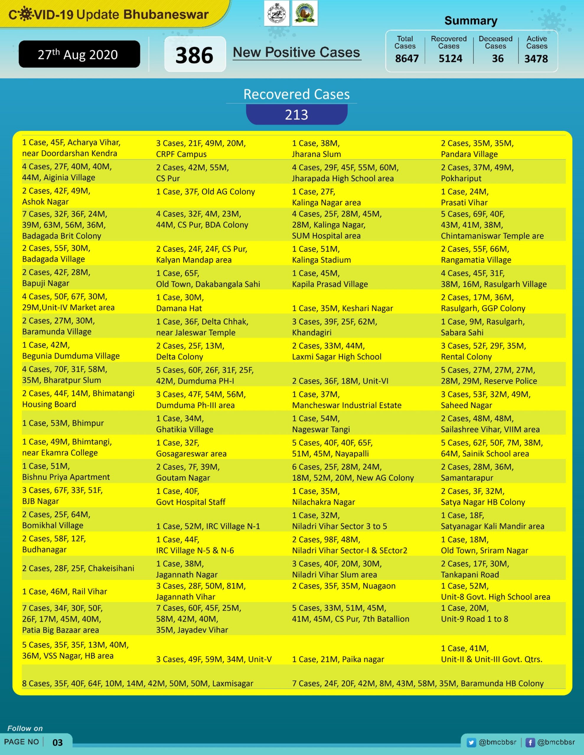 With 36 deaths and 5124 recoveries, Bhubaneswar now has 3478 active cases.