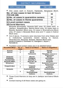 The COVID Warriors were on duty in Jashipur and Sukruli blocks. The contact tracing of all the cases was going on, the release stated.