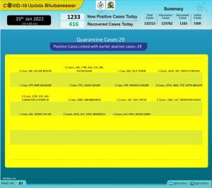 Bhubaneswar: The daily infection rate continued its rapid stride as 4 places in the capital city reported more than 100 patients in 24 hours.