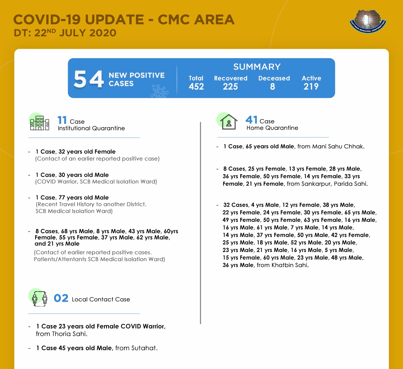 These are among the 54 fresh cases reported from Cuttack city, which pushed the total to 452.