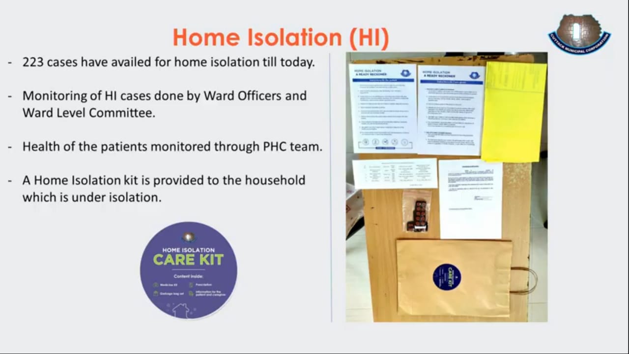 The commissioner said that patients with mild symptoms are being kept in COVID Care Centres and 223 have so far availed home isolation facility.