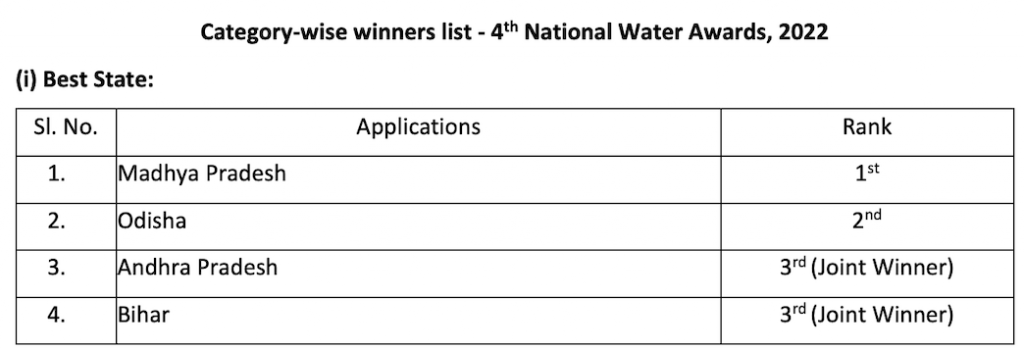 Bhubaneswar: Odisha has been ranked second with Madhya Pradesh adjudged as the Best State at the 4th National Water Awards, 2022, announced by Department of Water Resources, River Development, and Ganga Rejuvenation (DoWR, RD &GR), Ministry of Jal Shakti.