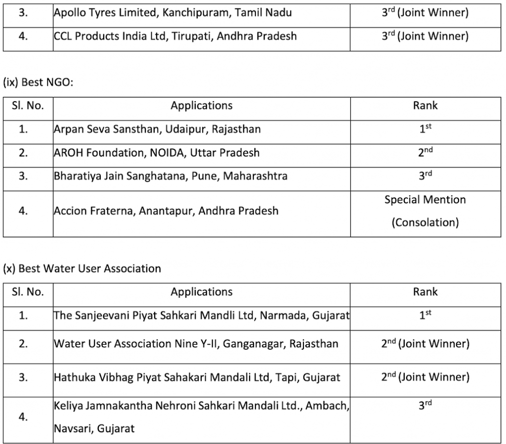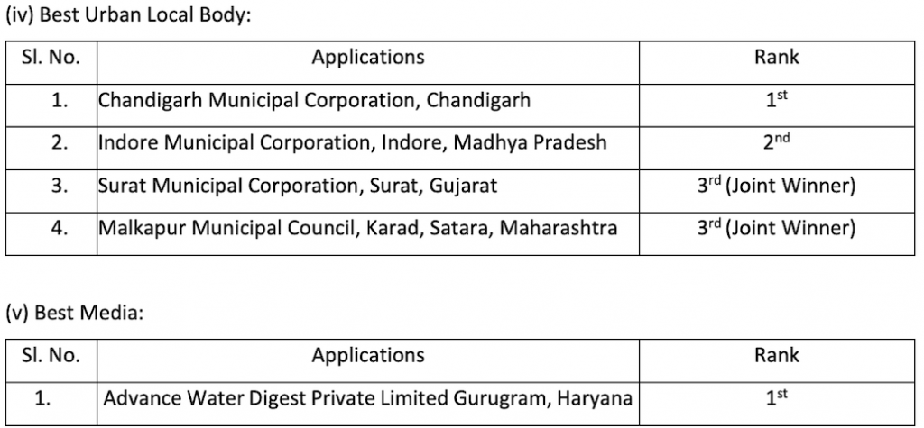 As part of the ongoing nationwide drive to realise the government’s vision of a ‘Jal Samridh Bharat’ or ‘Water Prosperous India’, the awards focus on encouraging the good work and efforts made by various individuals and organisations. It seeks to create awareness among people about the importance of water and motivate them to adopt best water use practices. The event provides an opportunity to all people and organisations to forge a strong partnership and further strengthen public participation in water resource conservation and management activities, a PIB release said.