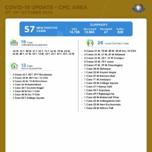 Of the new cases, 19 were detected in institutional quarantine centres and 12 in home quarantines while 26 were local contacts. Among the local contacts, 4 cases were identified in CDA and 3 each in Bidanasi and Tulasipur.