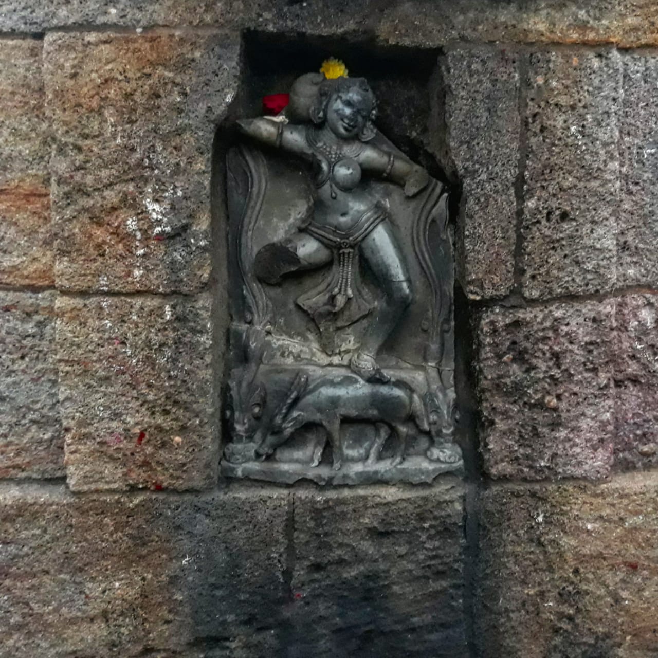 The circular shape gives it a different touch. At the centre is a Chandi mandap with four figures of Lord Shiva’s Bhairav forms. The circular structure of the temple represents the female reproductive organ – yoni, while the pillar at the centre symbolises the male reproductive organ. The entrance of the temple is a tiny gate. One has to bend to enter. There are two striking carvings of Lord Shiva’s ‘Kaal’ and ‘Vikaal’ forms at the entrance. While ‘Kaal’ stands for unfortunate, bad days, the latter is a form of goodness.