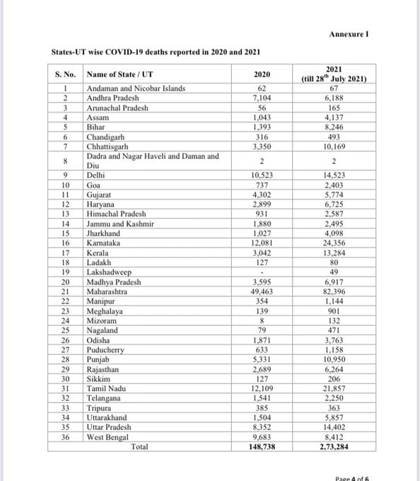 Bhubaneswar: Odisha had seen 1,871 deaths due to COVID-19 during the first wave in 2020 and the toll mounted to 3,763 between January and July 28 this year, according to a reply in the Lok Sabha on Friday.