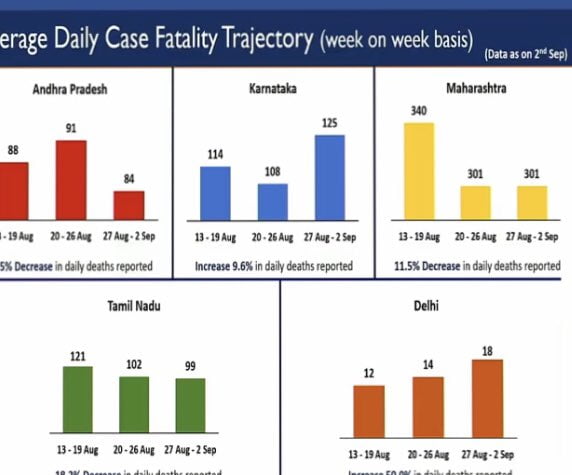 While Maharashtra, Tamil Nadu and Andhra Pradesh have witnessed a decrease in COVID-19 deaths in the last three weeks, there has been a rise in fatalities in Karnataka and Delhi.