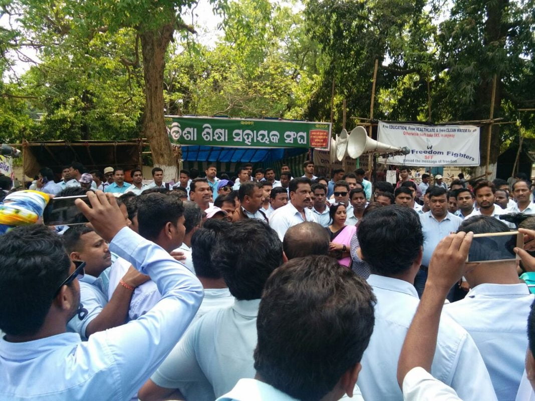 Bhubaneswar: Pressing for fulfilment of their 7-point charter of demands, more than 70,000 Siksha Sahayaks went on a mass leave and staged mass dharna on the Mahatma Gandhi Marg in the Odisha capital on Monday.