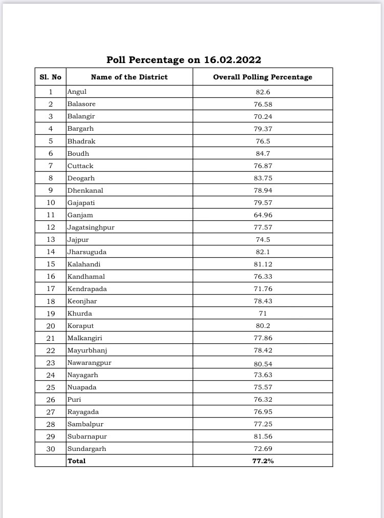 In the 2017 Panchayat polls, Phase I voter turnout was 76.75 per cent. The percentage of voters who exercised their franchise in Angul was almost the same in 2022 and 2017.