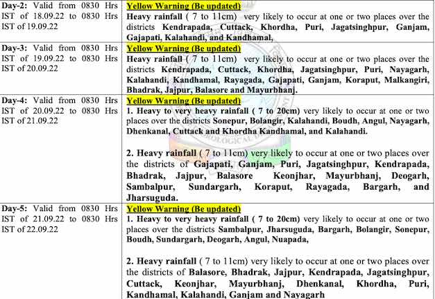 Under its influence, light to moderate rainfall would commence from September 19 afternoon and continue till the night of September 22 over Odisha. Initially, moderate rainfall would be experienced in the districts of Puri, Khurda, Nayagarh, Ganjam, Gajapati, Rayagada and Koraput on September 19 and 20 after which the rains would shift to north Odisha from the night of September 20.