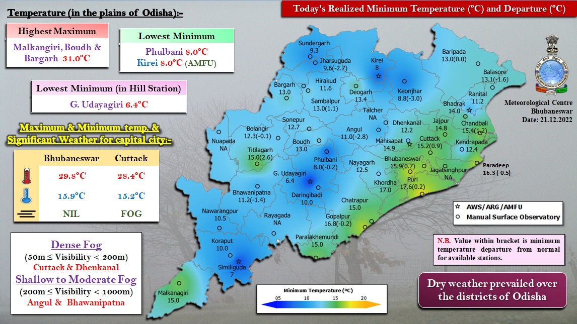 - Phulbani (Kandhamal) and Kirei (Sundargarh): 8°C