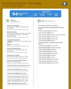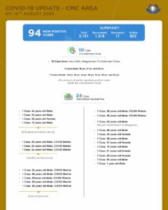 Cuttack: As many as 94 COVID-19 positive cases were reported from the areas under Cuttack Municipal Corporation (CMC) on Saturday.