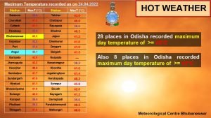 The places where mercury crossed 43 degree Celsius are Sonepur (43.8) which is highest in the state, Bhubaneswar (43.3) and Angul (43.1). The mining town of Talcher registered 43 degree Celsius.