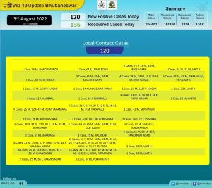 According to Bhubaneswar Municipal Corporation (BMC), total 120 new COVID cases were registered in the city on the day compared to 102 on Tuesday and 103 on Monday. All the new patients were local contact cases.