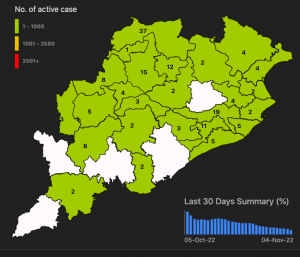Till November 4, five districts – Dhenkanal, Ganjam Rayagada, Nabarangpur and Malkangiri – were COVID-free with nil active cases, as per the state COVID dashboard.
