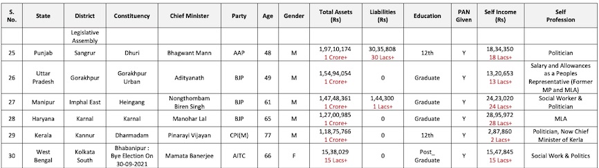 Of the 30 CMs, one holds a doctorate degree while nine are post graduate, 4 graduate professional, 11 graduate, one diploma holder, three 12th pass and one 10th pass.
