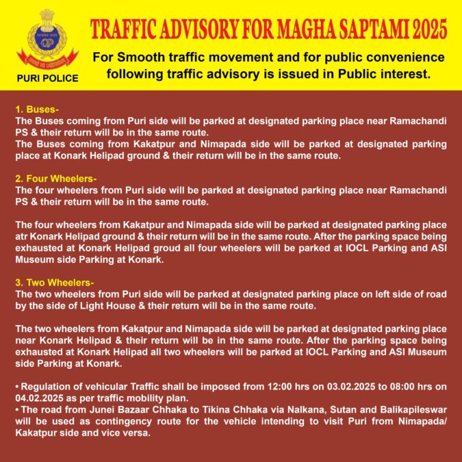 Sources further stated that representative idols of Triveniswar of Madhipur village, Tshaneswar of Santpur village, and Dakhineswar of Kurujang village will be taken out on palanquins in a procession at 9.45 pm on Monday and worshipped at Konark NAC Mandap, Tehsil Office, East Division Post Office Complex.