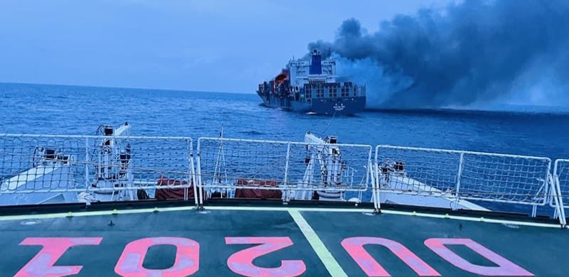 “The vessel is currently being towed westward at a speed of about 1.8 knots. It is now nearly 35 nautical miles off the coast. Three ICG Offshore Patrol Vessels are escorting the ship while also continuing essential firefighting efforts. Now, only thick smoke and a few remaining hotspots are visible onboard MV Wan Hai 503 – a testament to the effective and sustained firefighting operations carried out by the ICG, which helped prevent a potential environmental disaster,” the official said.