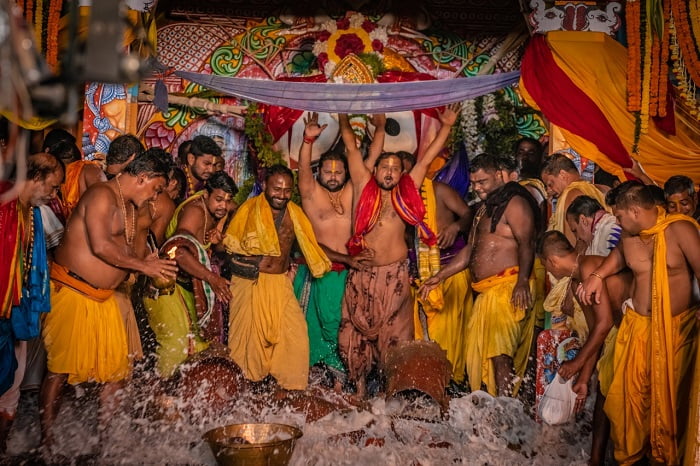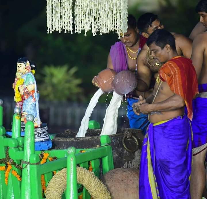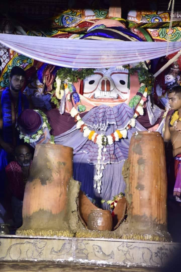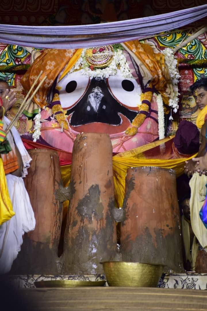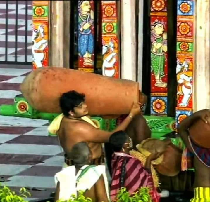 After completion of the Adhara Pana ritual of the deities, the Adhara Handi are broken on the chariots by the sevaks, as an offering to the “Parshava debatas, Chandi Chamundas” and other deities.