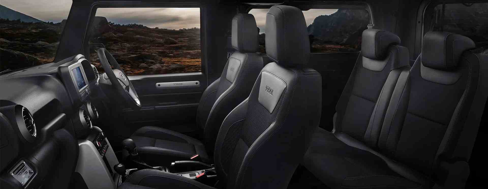 The new-gen Thar is slightly bigger than its predecessor, and has modern features like auto climate control, LED DRLs & tail lights, parking sensors, to 7-inch touchscreen infotainment systems. The seats, touchscreen and interiors are washable, bearing the Thar’s off-roading capabilities.