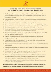 He further said the devotees will be allowed to take Mahaprasad at Anand Bazaar and designated places on temple premises.