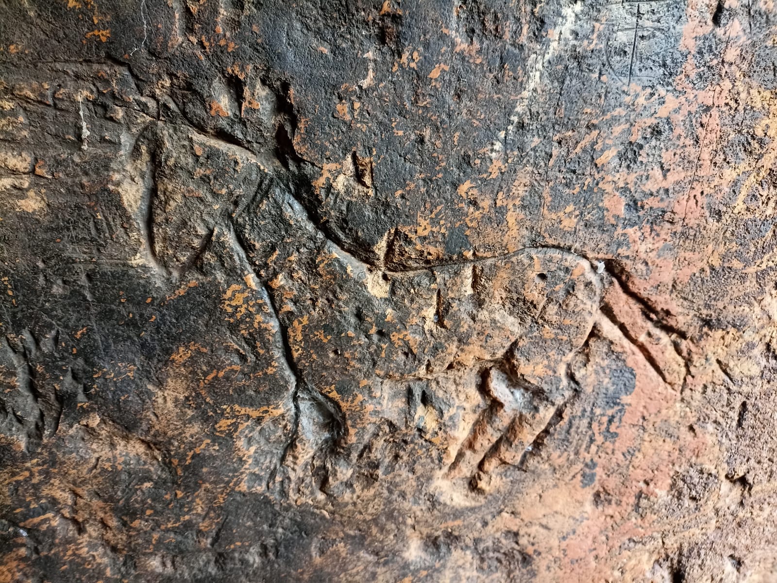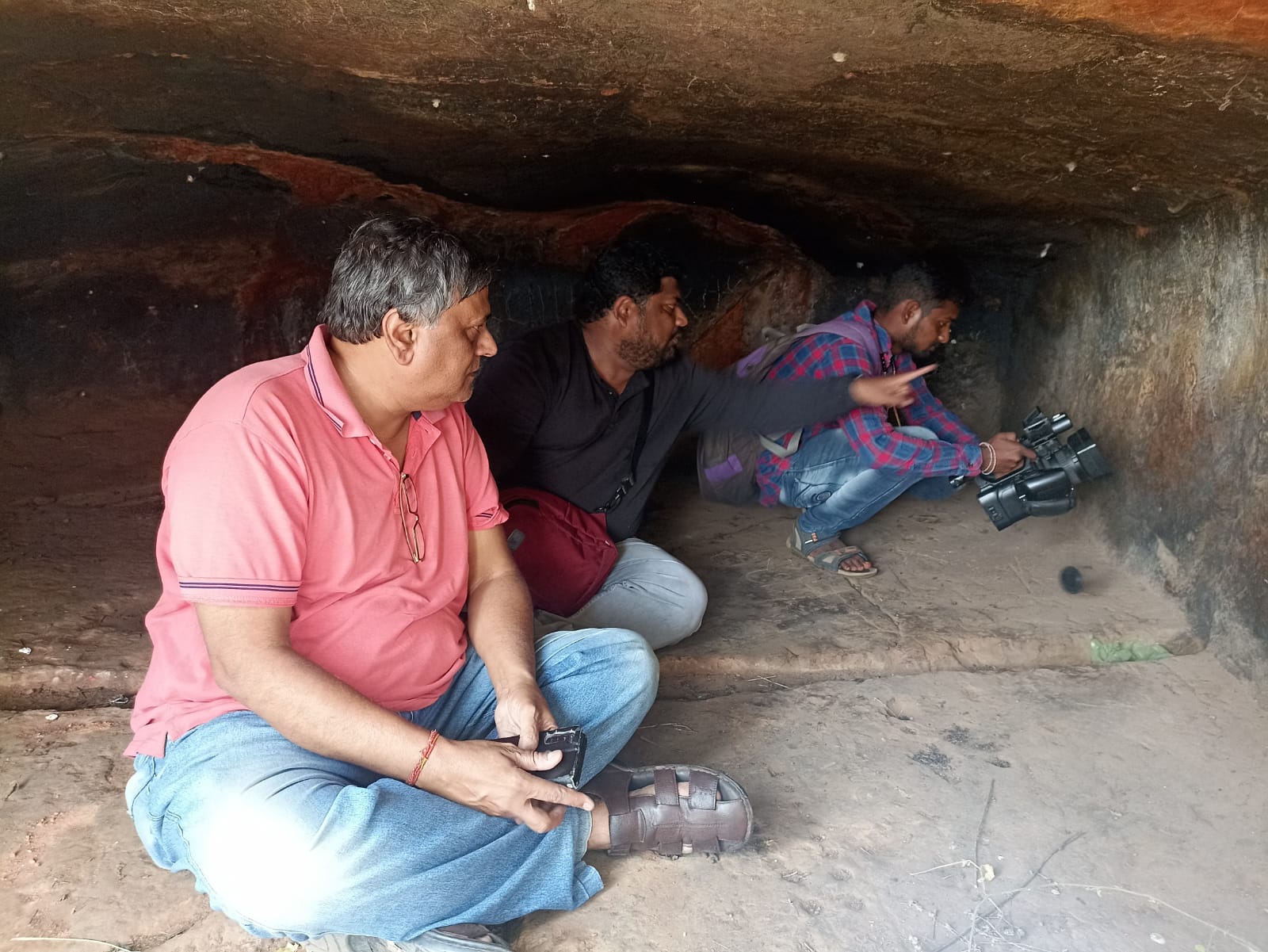 An exploration team from the Indian National Trust for Art and Cultural Heritage (INTACH), comprising of Anil Dhir, Dr Biswajit Mohanty, Deepak Nayak and Bikram Nayak, recently visited the 20 feet by 10 feet wide cave, which is a natural formation widened by chiselling and is very akin to the caves found in the Khandagiri and Udayagiri hills.  There are many rock art and inscriptions carved on the walls. Engravings in various geometrical forms and figures of humans and animals are extensively depicted. Stone-age tool implements too have been reportedly found earlier in the vicinity of the cave.