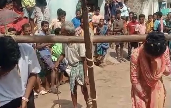 Jeypore: A man and a woman, who had eloped to Andhra Pradesh during Rath Yatra, were on Sunday humiliated and tied to a yoke like bullocks at Peda Itiki village of Bargi GP under Narayanpatna block in Odisha’s Koraput.