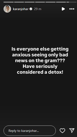 Taking to his Instagram handle on Monday morning, Karan wrote, “Is everyone else getting anxious seeing only bad news on the gram??? Have seriously considered a detox!”