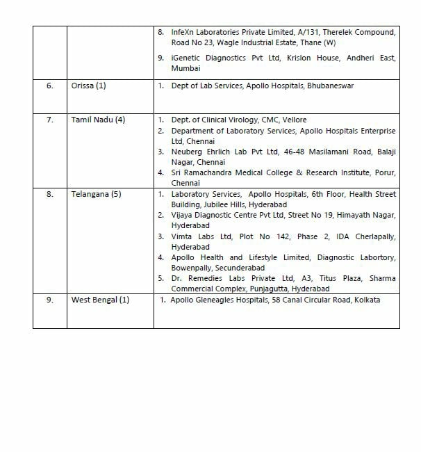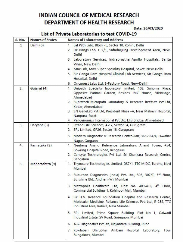 Here is the list of private laboratories across the country which have got the ICMR nod: